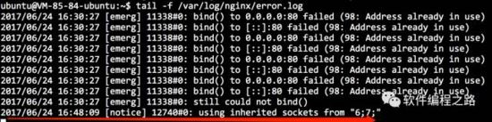 不由得產(chǎn)生困惑,為什么手動開啟一個新的實例行不通,使用信號重啟就可以達到。先看下nginx log文件:
