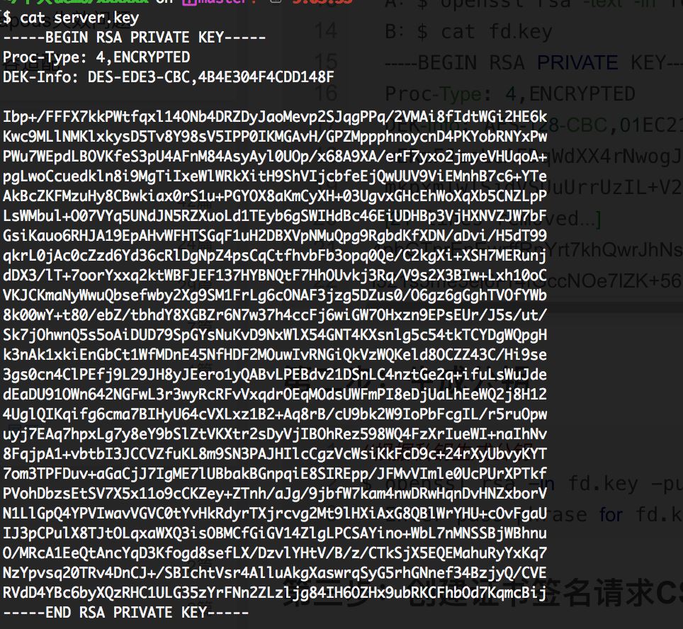 繼續(xù)查看 server.key 使用命令:cat server.key, 如下圖所示: