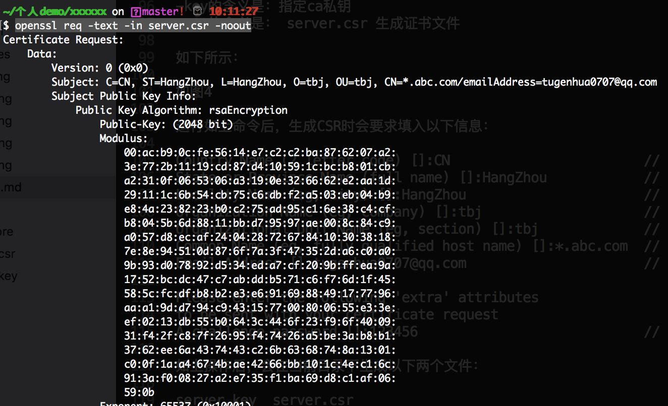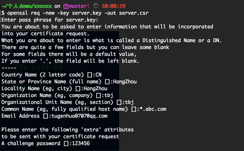 運行如上命令后,生成CSR時會要求填入以下信息: