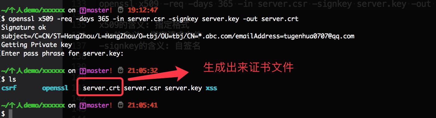 openssl x509 -req -days 365 -in server.csr -signkey server.key -out server.crt