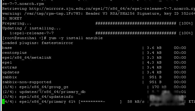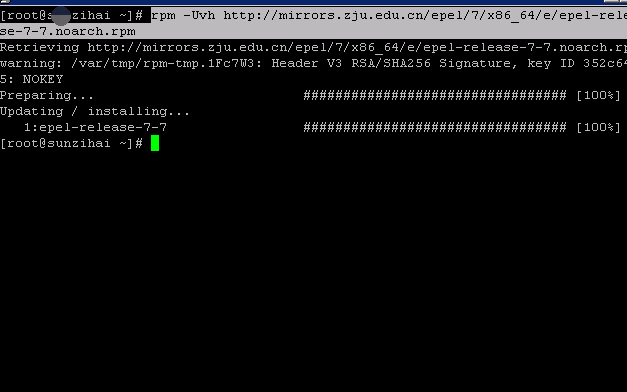 用rpm命令安裝yum擴(kuò)展源:rpm -Uvh http://mirrors.zju.edu.cn/epel/7/x86_64/e/epel-release-7-7.noarch.rpm