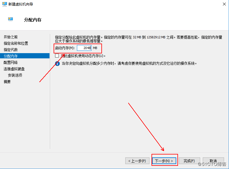 10、這里根據(jù)實際需求來定義虛擬機(jī)的內(nèi)存,然后單擊“下一步”: