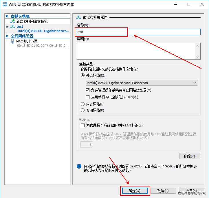 4、設(shè)置虛擬交換機(jī)的名稱,然后單擊“確定”: