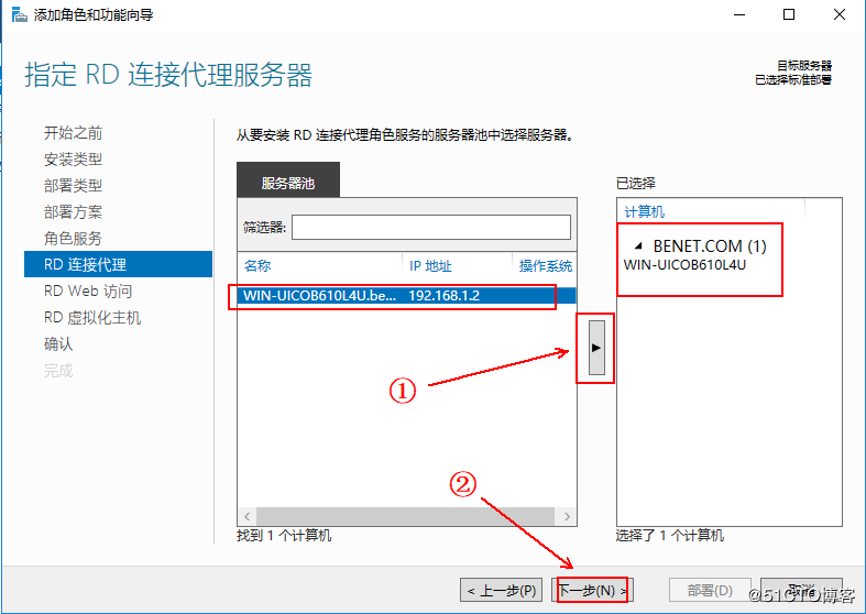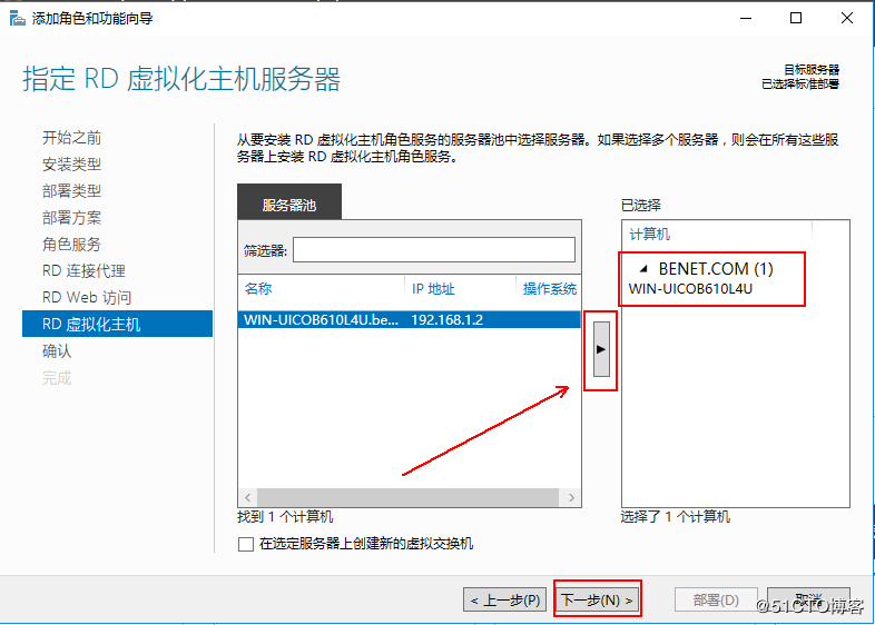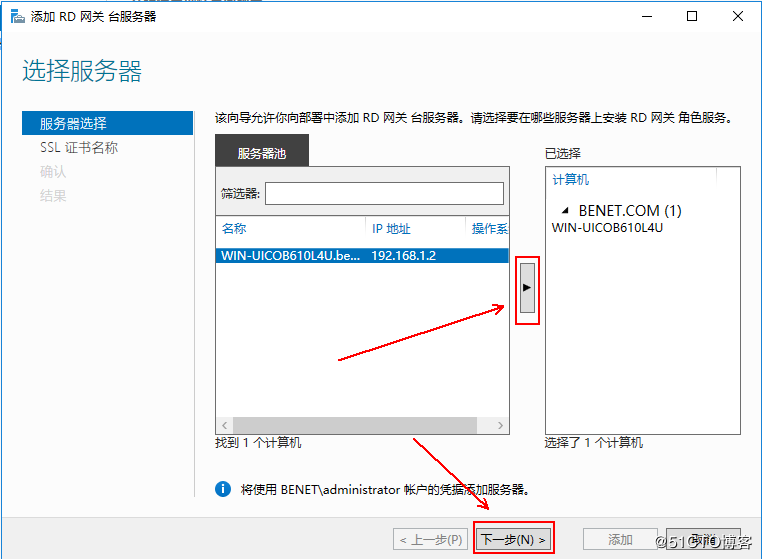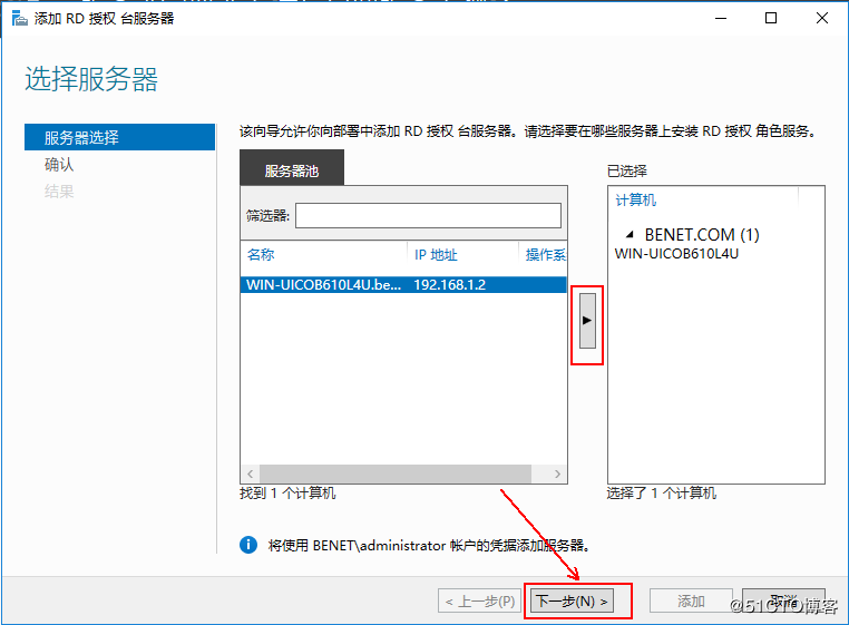 2、在這里把左側(cè)窗格中的服務(wù)器添加到右側(cè)窗格,然后單擊“下一步”: