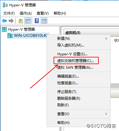 2、右擊服務(wù)器名稱,然后選擇“虛擬交換機(jī)管理器”選項: