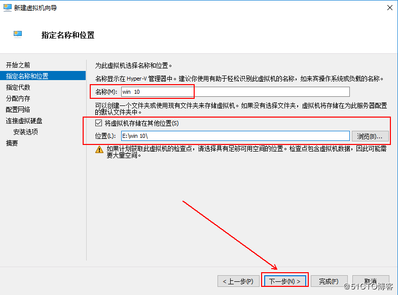 8、在此定義虛擬機(jī)的名稱和安裝位置,然后單擊“下一步”: