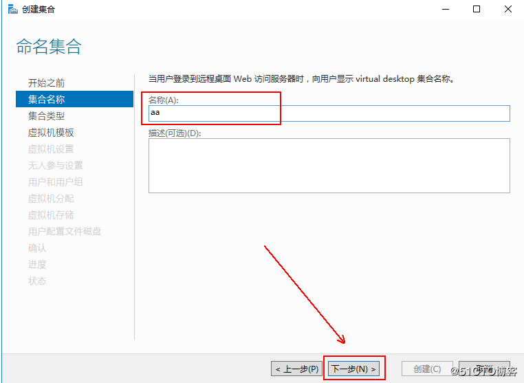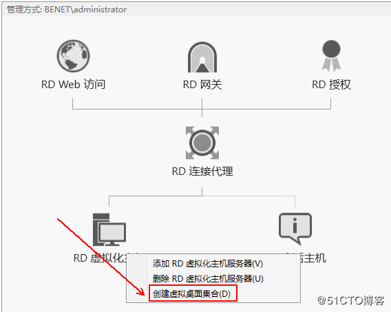 1、右擊“RD虛擬化主機(jī)”,然后選擇“創(chuàng)建虛擬桌面集合”: