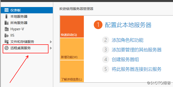 1、在RD服務(wù)器上,使用域管理員登錄,然后,打開服務(wù)器控制臺,單擊“添加角色和功能”:
