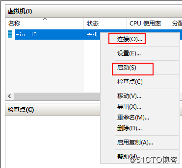 15、現(xiàn)在即可看到創(chuàng)建的虛擬機(jī),右擊虛擬機(jī)并點擊“啟動”和“連接”:
