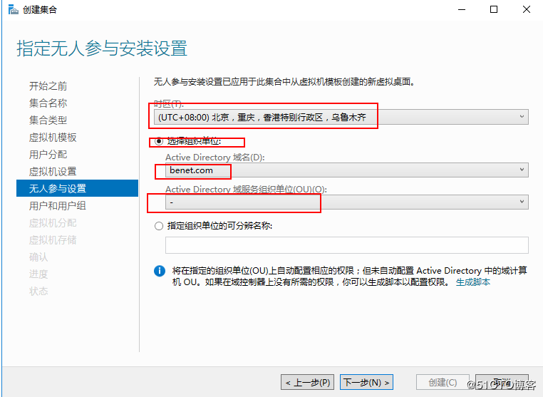 8、這里設(shè)置時區(qū)、指定哪個域(可以細(xì)分至OU)的用戶可以登錄到虛擬機(jī):