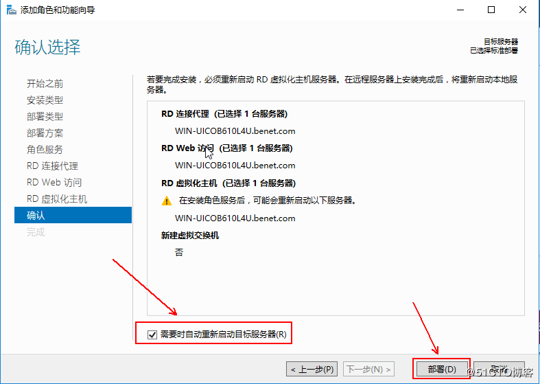 10、這里勾選“需要時重啟.....”的默認(rèn)復(fù)選框,然后單擊“部署”: