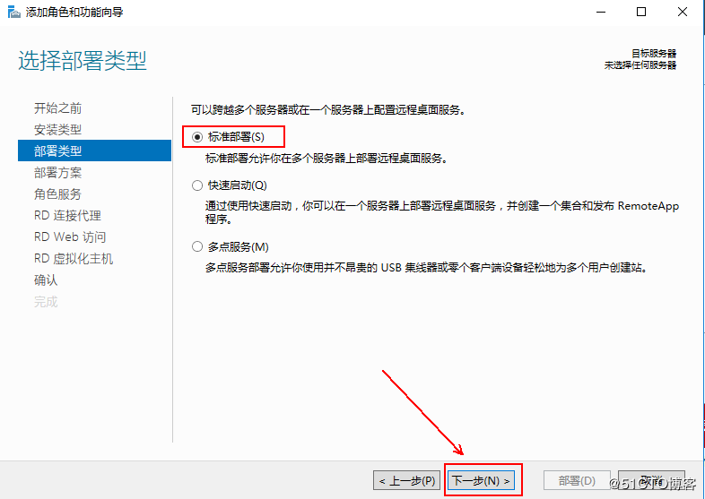 4、這里選擇默認(rèn)的“標(biāo)準(zhǔn)部署”,然后單擊“下一步”: