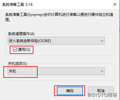 18、在彈出的對話框中,選擇“關(guān)機(jī)”選項,并勾選“通用”復(fù)選框,然后單擊“確定”(注意,一定要選擇為“關(guān)機(jī)”,要不然,這一步做的沒有意義):