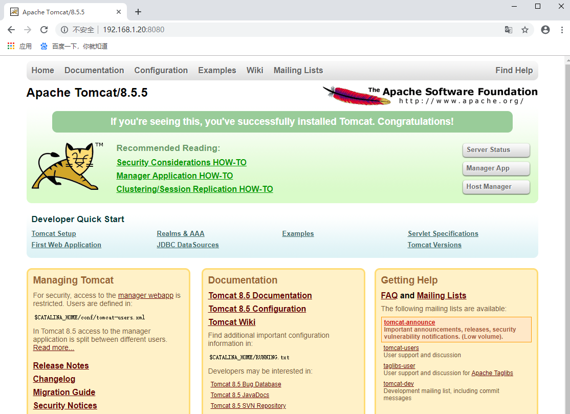 出現(xiàn)以上內(nèi)容,即表示成功啦,現(xiàn)在訪問(wèn)ip:8080看看