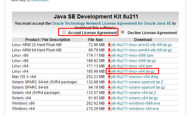 點(diǎn)擊 Accept License Agreement 選擇好版本進(jìn)行下載,需要注冊(cè)O(shè)racle賬戶登陸下載!