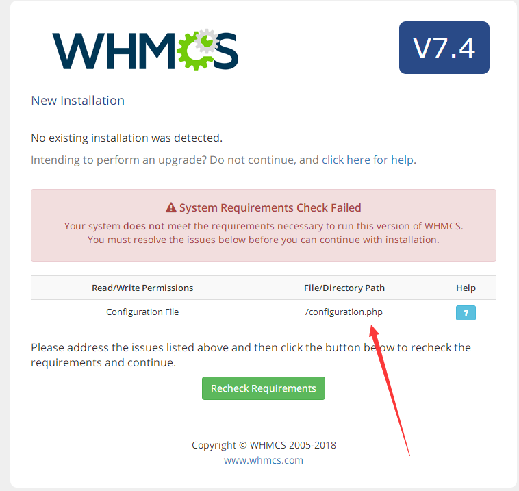 3、如果出現(xiàn)下面問題(沒有出現(xiàn)則跳過),提示權(quán)限不足(應該是我下載的版本有bug),使用寶塔手工創(chuàng)建一configuration.php個即可,權(quán)限755