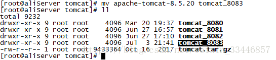 [root@aliServer tomcat]# mv apache-tomcat-8.5.20 tomcat_8083