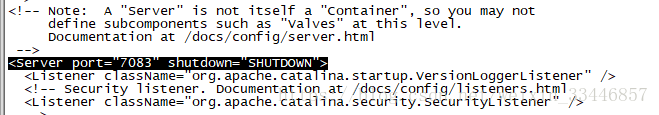 (1): 找到<Server port="8005" shutdown="SHUTDOWN"> 將端口號改為7083