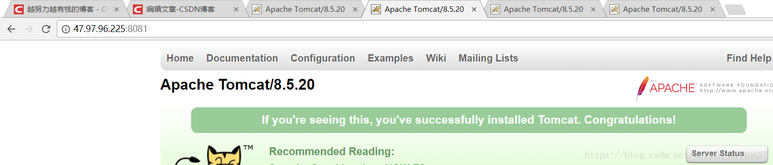 我的第一個tomcat端口號默認沒變,第二個改為了8081,第三個是8082,第三個是8083
