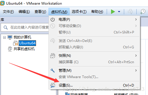 1.依次點(diǎn)擊VMWare窗口左上方的“虛擬機(jī)”、“設(shè)置”,如圖1