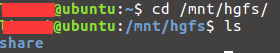 9.至此,在/mnt/hgfs/下應(yīng)該就能看到剛才在虛擬機(jī)中設(shè)置的windows下的共享文件夾share了:
