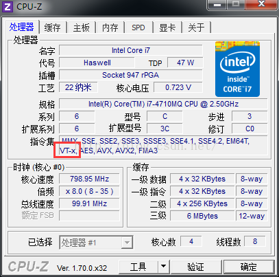 首先是要檢查 CPU是否支持虛擬化,可以用CPU-Z軟件查看:如果看到 VT-X,說明CPU是支持虛擬化的,如下圖顯示表明此電腦支持虛擬化;