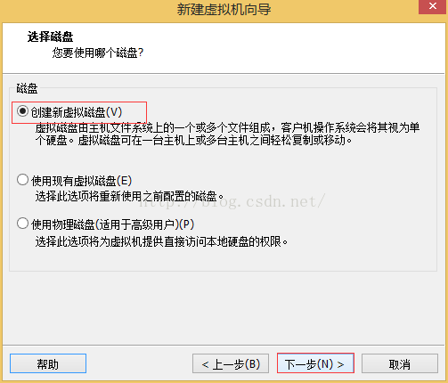 13、選擇磁盤“創(chuàng)建新虛擬磁盤(V)”,然后點擊下一步;