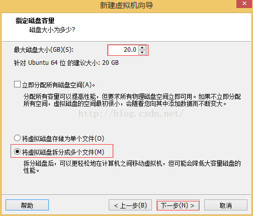 14、指定磁盤容量,可以根據(jù)自己的硬盤剩余容量進行設(shè)置,然后點擊“下一步”;