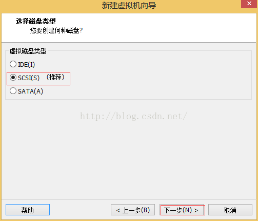 12、選擇磁盤類型“SCSI(S)”,然后點擊“下一步”;