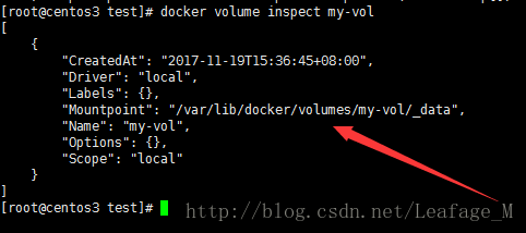 注意這個Mountpoint所對應(yīng)的目錄就是我們用來主機(jī)和容器進(jìn)行文件傳輸?shù)哪夸洝?/p>