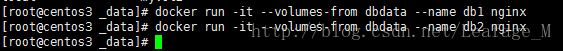 2.然后,可以在其他容器中使用–volumes-from來掛載dbdata容器中的數(shù)據(jù)卷,例如創(chuàng)建db1和db2兩個容器,并從dbdata容器掛載數(shù)據(jù)卷: