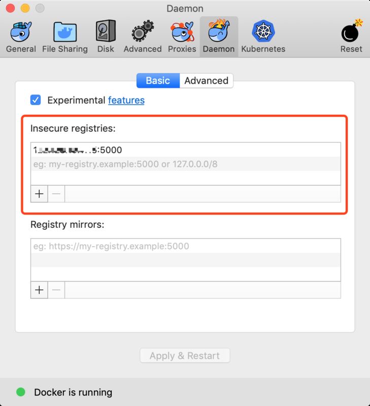 注意倉庫地址沒有加協(xié)議部分,docker 默認(rèn)的安全策略需要倉庫是支持 https 的,如果服務(wù)器只能使用 http 傳輸,那么直接上傳會失敗,需要在 docker 客戶端的配置文件中進(jìn)行聲明。