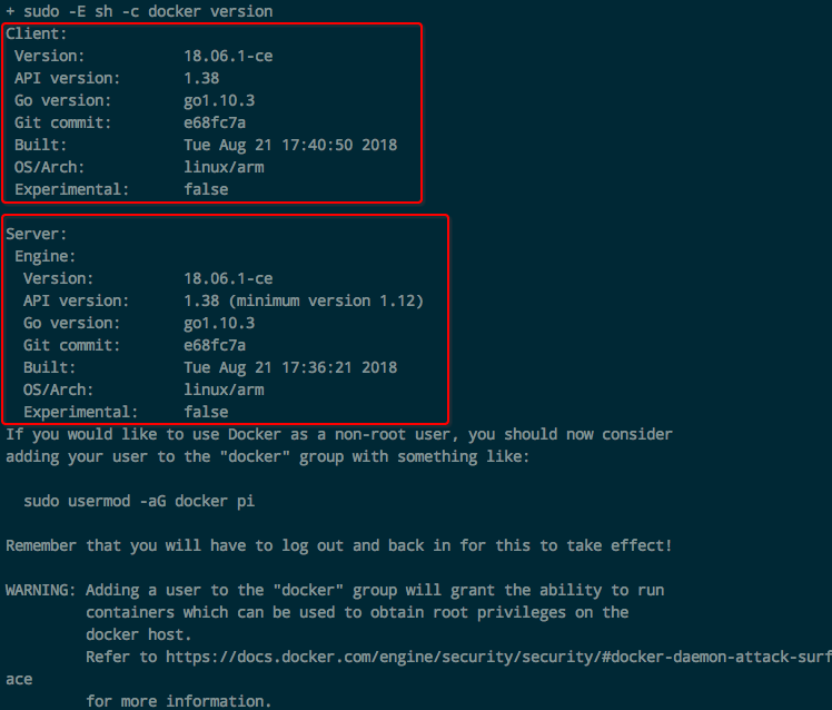 $ curl -fsSL get.docker.com -o get-docker.sh && sh get-docker.sh