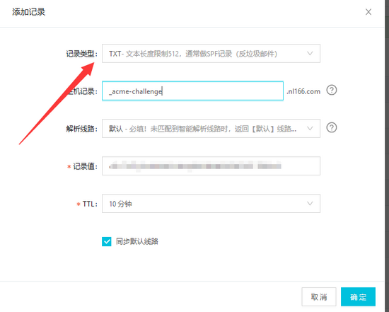 接下來會讓你驗證域名,按要求解析個TXT類型的記錄