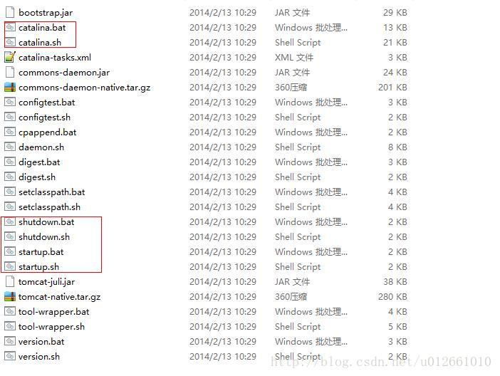 bin目錄主要是用來存放tomcat的命令,主要有兩大類,一類是以.sh結尾的(linux命令),另一類是以.bat結尾的(windows命令)。