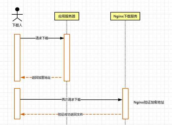 整個加密過程有點對稱加密的意思,后端根據(jù)密鑰生成加密地址,Nginx代理服務(wù)器進行解密校驗,如果通過則允許下載。