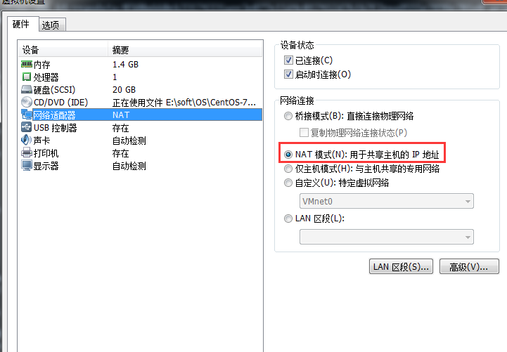 2.虛擬機->設置->網(wǎng)絡適配器->選擇NAT模式