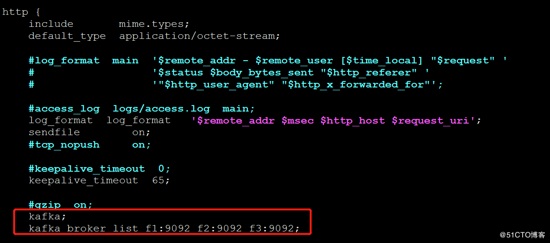 6.修改nginx的配置文件:設(shè)置一個(gè)location和kafaka的topic,詳情請查看當(dāng)前目錄的nginx.conf
