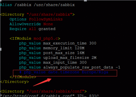 以上修改完畢后,我們?cè)賮硇薷南聑abbix.conf文件。如下: