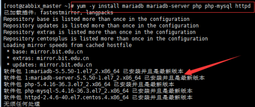 通過上圖,我們可以很明顯的看出centos7默認(rèn)安裝的是php5.4、httpd2.4和maradb5.5,這個(gè)完全符合zabbix3.0對(duì)軟件版本的要求。lamp安裝完畢后,我們現(xiàn)在來配置mysql數(shù)據(jù)庫。