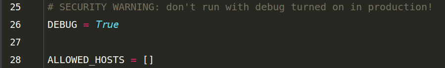 代碼肯定有bug,如果DEBUG = True,就會直接把異常傳給網(wǎng)頁前端,一般在寫代碼時打開,方便找錯,但在實際生產(chǎn)中肯定要關(guān)掉,不能給用戶看到這個。ALLOWED_HOSTS = [ ]:如果在里面添加東西:如ALLOWED_HOSTS = [ localhost ],Django則只允許通過localhost訪問頁面,其他的都被屏蔽了,127.0.0.1也就不行了。