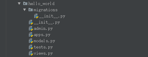 切換到和manage.py的同級目錄中,命令行輸入python3 manage.py startapp hello_world 或 python3 manage.py startapp hello_world,就創(chuàng)建好了一個名為hello_world的應用。文件結(jié)構(gòu)為: