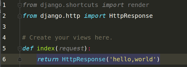 保存文件后,在瀏覽器中輸入http://127.0.0.1:8000/index/ 或http://localhost:8000/index/ 就可以看到hello,world。