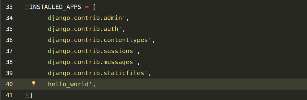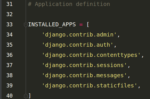 這里面時Django自帶的一些應用,我們創(chuàng)建應用后要把名稱寫在這個里面,才能被Django識別,不然它不認識。
