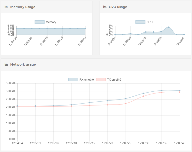 Container statistics 視圖實(shí)時(shí)的顯示容器占用的資源信息,需要注意的是相關(guān)的數(shù)據(jù)沒(méi)有被持久化,顯示的內(nèi)容總是每次打開這個(gè)視圖后的數(shù)據(jù):
