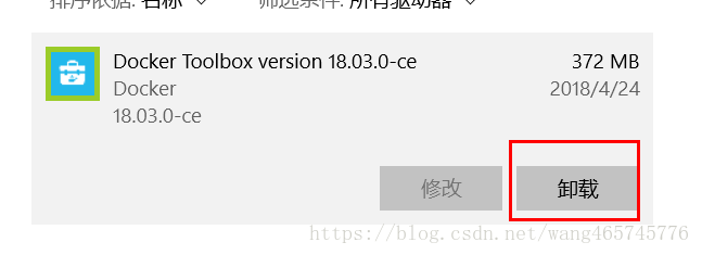 3、使用Window的標準程序卸載Docker Toolbox,通過控制面板(程序和功能)卸載程序。