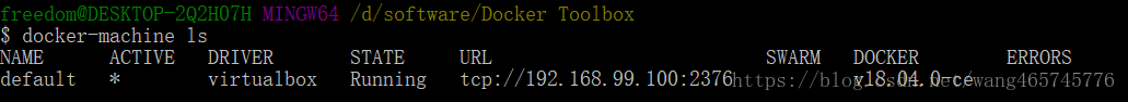 1、打開Docker Quickstart Terminal,使用命令docker-machine ls顯示所有的虛擬機