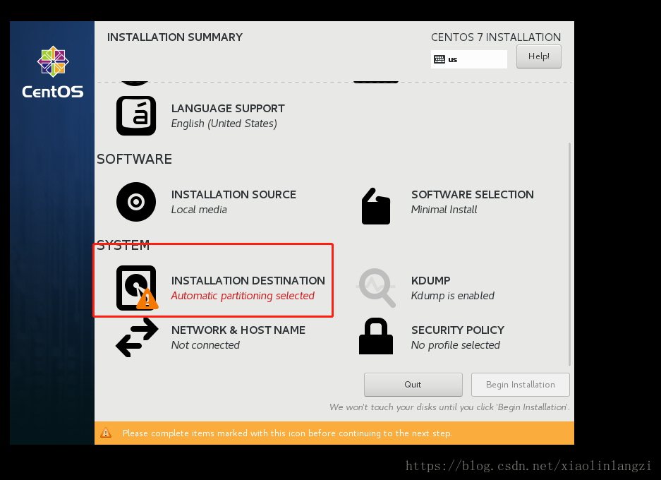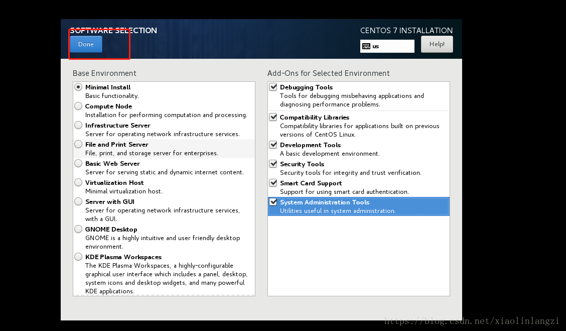 軟件SOFTWARE”-“軟件選擇SOFTWARE SELECTION”,我們使用的是Minimal版本,默認(rèn)是最小化安裝