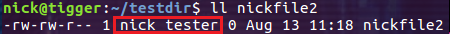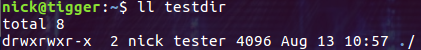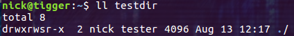 此時(shí)目錄 testdir 的 owner 是 nick,所屬的 group 為 tester。