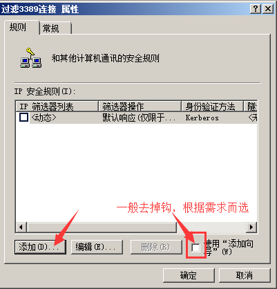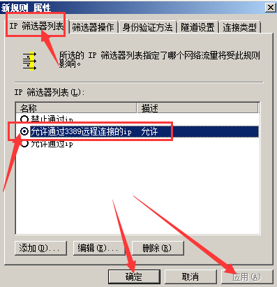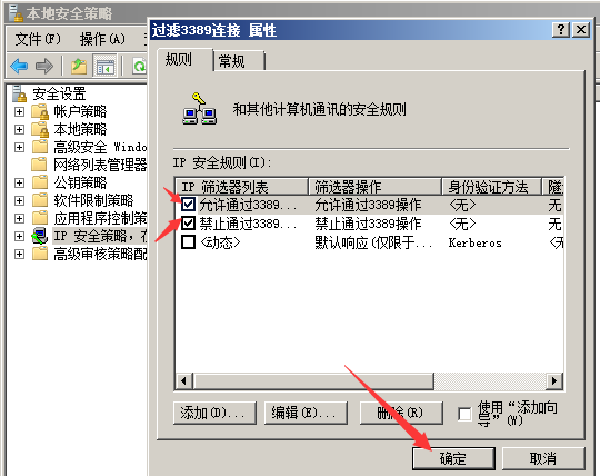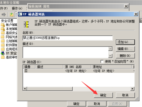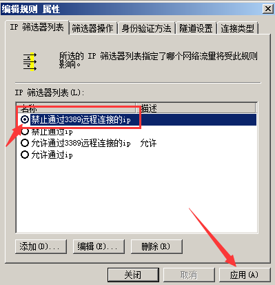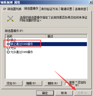 然后在添加一個(gè)禁止通過(guò)3389遠(yuǎn)程連接的ip規(guī)則。